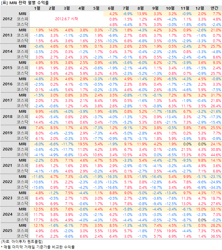 [공개] MRI 전략 월별 수익률 보기 (25년 12월)
